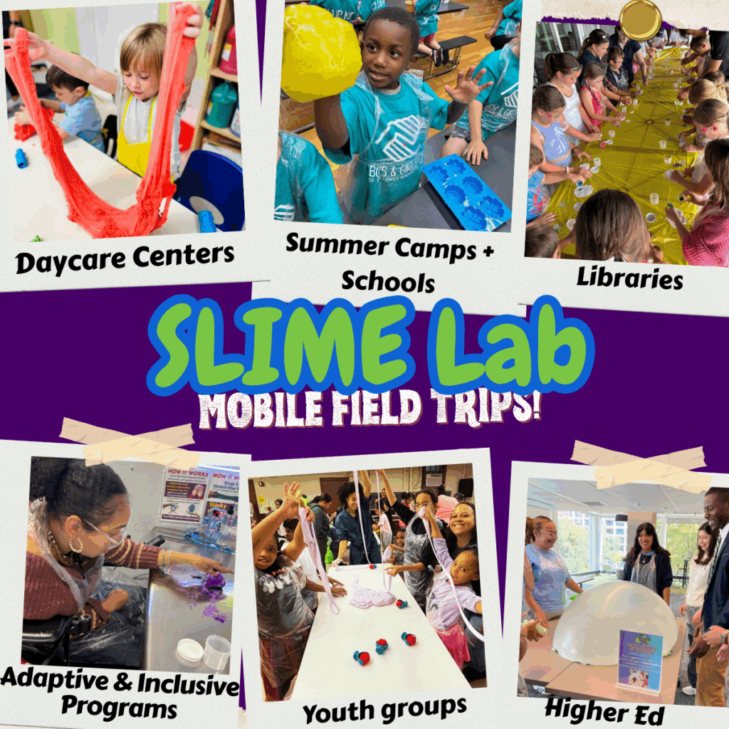 🔬 STEM + Creativity Field Trip — Discover the science behind slime and the art of slime making, blending chemistry and creativity for schools, afterschool programs, and summer camps. Activity/Demo time: 5-10 mins